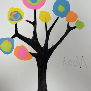 So I gave each student a white piece of paper with a tree trunk outline and bright colored copy paper. They had to color in the tree trunk using black sharpie then start cutting circles out of the colored copy paper and glue them around the branches.
