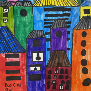 For this next project my 3rd grade students reviewed artwork that showed overlapping lines and shapes and then created a cityscape of their very own. So proud of the results!